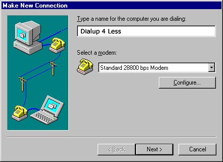Under Type a name for the computer you are dialing, type Dialup4Less